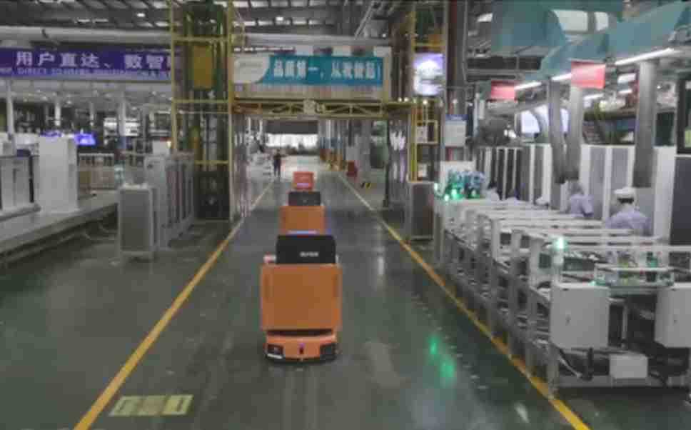 为车载冰箱物流配送打造的智能解决方案,,包含产中物流通过潜伏举升AMR搬运至线边,,产后成品物流智能仓储,,,,流程包含产中物流智能齐套入库,,线边安灯叫料AMR智能配送至线边,,,成品入库、、、、出库,,,,通过无人堆高车机器人,,,智能仓储管理替代人工作业管理,,实现更高存储、、、、更高效率、、、、更具柔性化的解决方案。。。